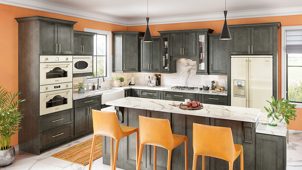 Start Shopping NowOur Smokey Grey cabinet line receives a transitional style door & drawer front with a contemporary stain grey finish. Smokey Grey perfectly compliments both traditional and contemporary spaces, plus it comes standard with soft-closing hinges & drawer-glides.